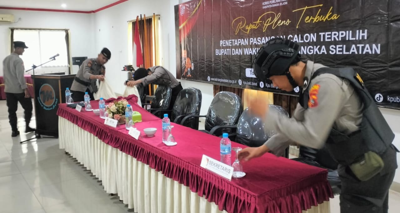 BANGKA SELATAN – Polres Bangka Selatan menerjunkan 170 personel gabungan untuk mengamankan rapat pleno penetapan pasangan calon bupati dan wakil bupati terpilih di Kabupaten Bangka Selatan, Kamis (8/1/2025).
