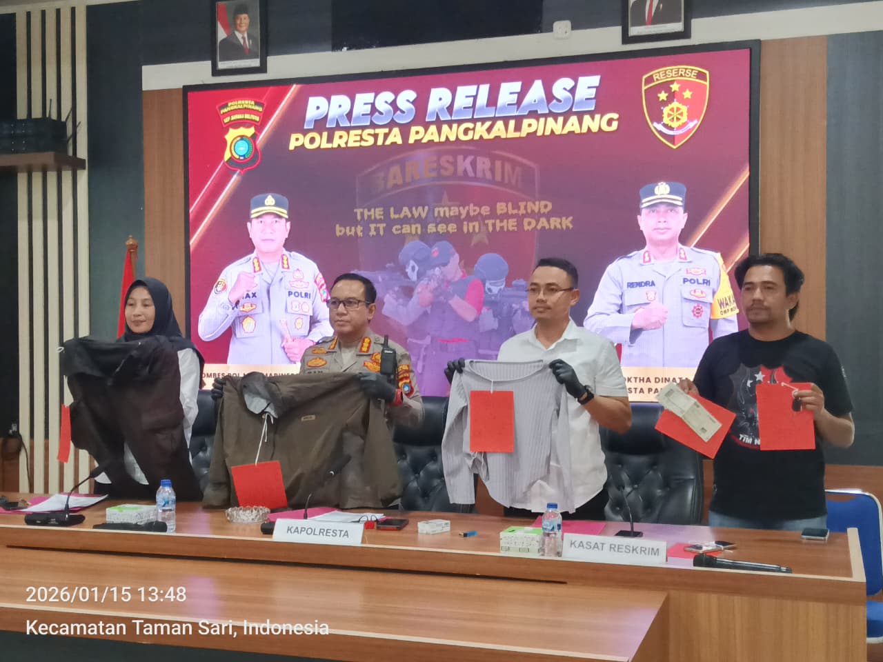 ‎Kapolresta Pangkalpinang Kombes Pol Max Mariners mengumumkan keberhasilan penangkapan tersebut dalam konferensi pers di Aula SAR Polresta Pangkalpinang, Kamis (15/1/2026).
