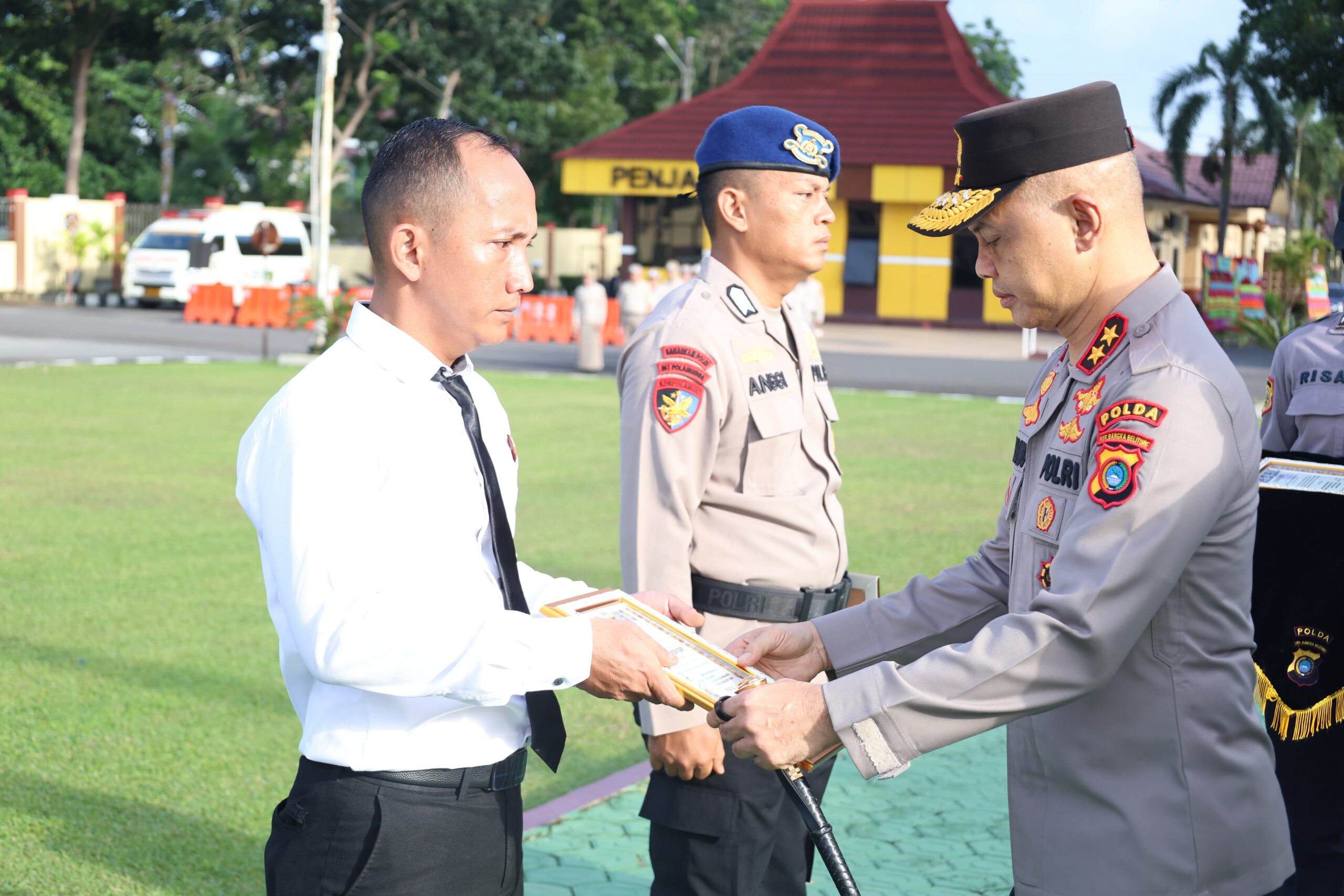 Pemberian penghargaan dilangsungkan pada saat apel pagi dihalaman Mapolda, Selasa (8/7/25). Dalam apel tersebut, turut dihadiri Wakapolda Brigjen Pol Tony Harsono, para Pejabat Utama Polda serta seluruh personel dan ASN Polda Babel.