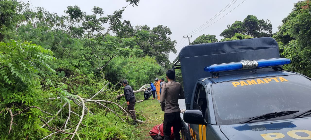 BANGKA BARAT – Kepolisian Resor Bangka Barat bergerak cepat menangani pohon tumbang akibat hujan deras disertai angin kencang yang melanda wilayah Kota Muntok, Sabtu (25/4/2026) sore.