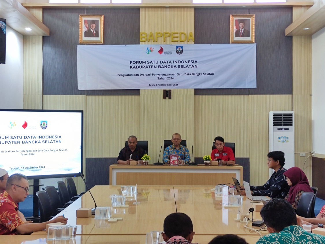 Forum yang berlangsung di Ruang Rapat Studio Kelapan Bappelitbangda Kabupaten Bangka Selatan, Kamis, (12/12/2024), ini diharapkan dapat memberikan pemahaman lebih dalam mengenai prinsip-prinsip dasar penyelenggaraan Satu Data Indonesia di Kabupaten Bangka Selatan.