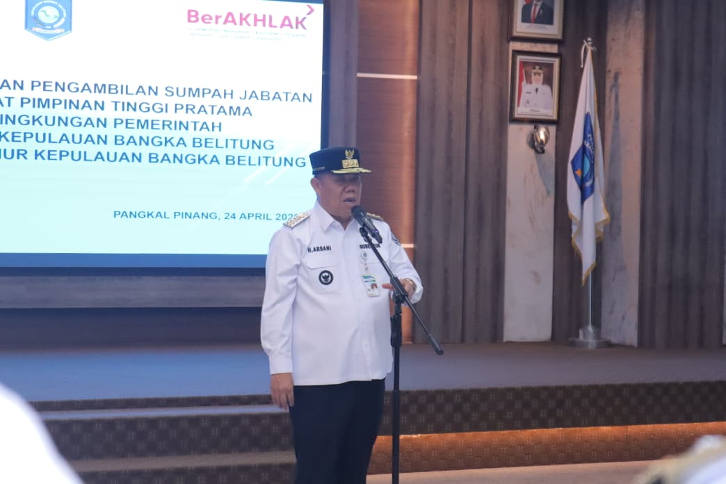 PANGKALPINANG – Gubernur Kepulauan Bangka Belitung, Hidayat Arsani, melantik delapan pejabat pimpinan tinggi pratama di lingkungan Pemerintah Provinsi Kepulauan Bangka Belitung, Jumat (24/4/2026).