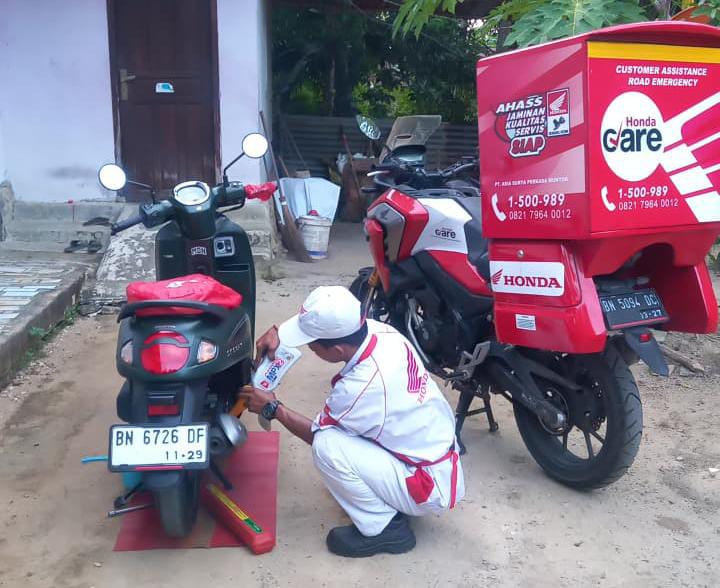 Melalui Honda Care, konsumen dapat memperoleh berbagai layanan bantuan darurat, seperti penanganan motor mogok, masalah ban, hingga kondisi darurat lainnya yang terjadi di perjalanan.