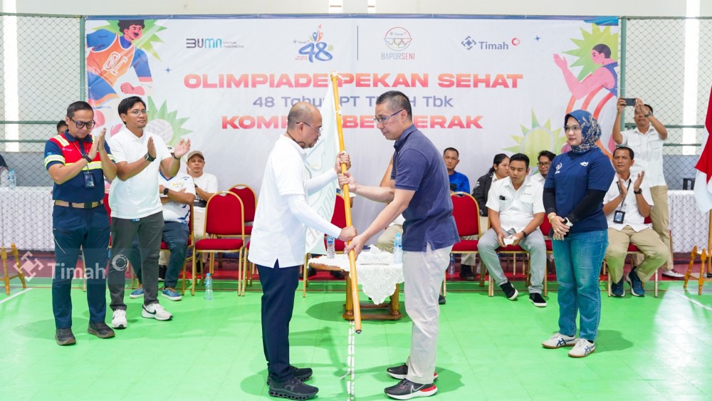 Seremoni pembukaan Pekan Sehat dilaksanakan di Gelanggang Olahraga Stannia, Kamis, (11/7/2024), ditandai dengan penyerahan pataka Baporseni oleh Direktur Sumber Daya Manusia PT Timah Tbk, Hendra Wardana Kusuma kepada Ketua Baporseni Ebby Wibisana dan diteruskan kepada Anderi selaku perwakilan seluruh atlet peserta Pekan Sehat.