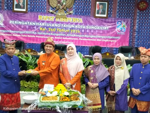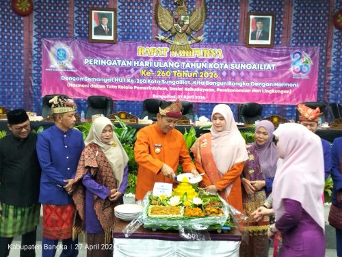 BANGKA – Peringatan Hari Ulang Tahun (HUT) ke-260 Kota Sungailiat berlangsung khidmat di Ruang Rapat Paripurna DPRD Kabupaten Bangka, Senin (27/4/2026).