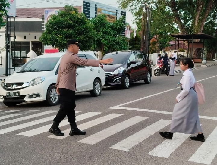 Kapolsek Taman Sari Turun ke Jalan, Atur Lalin di Depan SMKN 1 Pangkalpinang
