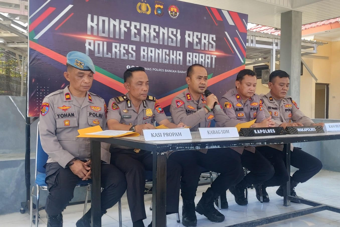 BANGKA BARAT – Polres Bangka Barat menggelar konferensi pers terkait dugaan pelanggaran kode etik oknum anggotanya secara profesional dan transparan di Mapolres Babar, Selasa (28/4/2026).
