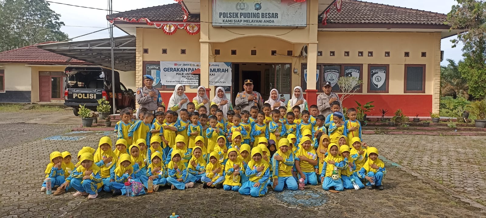 BANGKA – Polsek Puding Besar menerima kunjungan outing class anak-anak RA HADIQOTUL AMIEN Desa Puding Besar, Kamis (13/11/2025).
