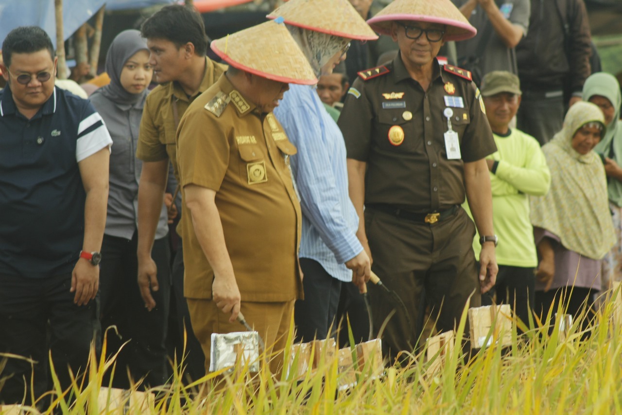 BANGKA SELATAN – Pemerintah Kabupaten Bangka Selatan menggelar Panen Raya Padi Sawah bersama Kejaksaan Negeri Bangka Selatan dan Gabungan Kelompok Tani Terap Berjaya Desa Bukit Terap, Kecamatan Tukak Sadai, Senin (8/9/2025).