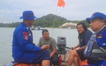 BANGKA – Personel Satuan Polairud Polres Bangka melakukan patroli dan memberikan imbauan Kamtibmas kepada pengurus dan pengunjung tempat wisata pantai di Kecamatan Sungailiat, Kabupaten Bangka, Minggu (5/5).