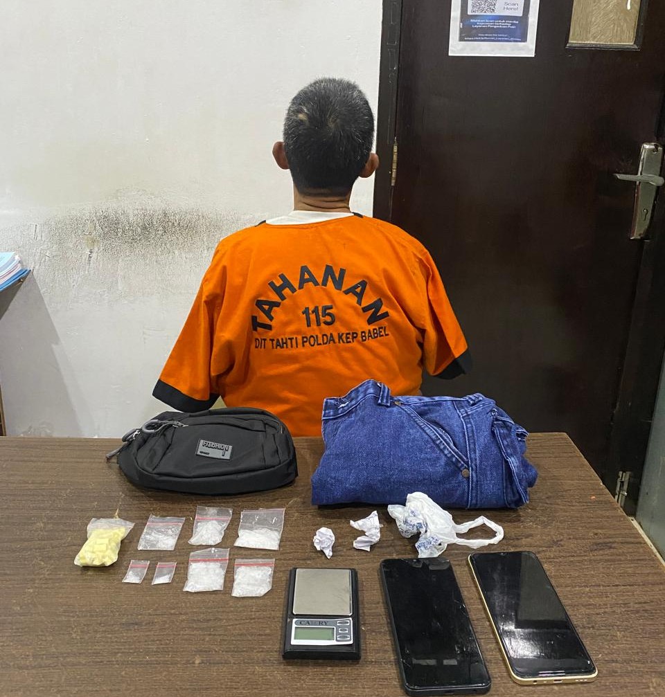 Seorang Pria berinisial MF alias Rian (48) yang diduga bertindak sebagai pengedar narkotika jenis sabu dan ekstasi di amankan Ditresnarkoba Polda Babel pada Selasa 28 April 2026 malam.