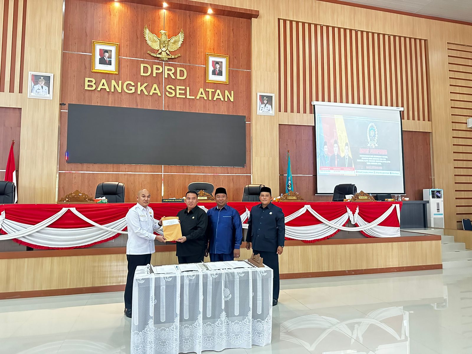 BANGKA SELATAN – Penjabat Sekretaris Daerah Kabupaten Bangka Selatan, Hefi Nuranda, menghadiri Rapat Paripurna dengan agenda penandatanganan nota kesepakatan Kebijakan Umum Anggaran serta Prioritas dan Plafon Anggaran Sementara Tahun Anggaran 2026, Rabu 15/10/2025).