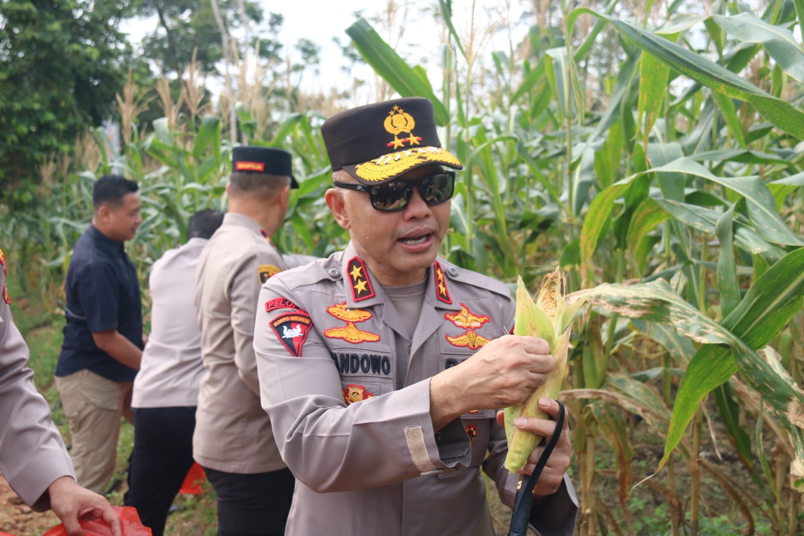 Panen jagung langsung dilakukan oleh Kapolda Bangka Belitung Irjen Pol Hendro Pandowo bersama Wakapolda Brigjen Pol Tony Harsono dan Pejabat Utama Polda.