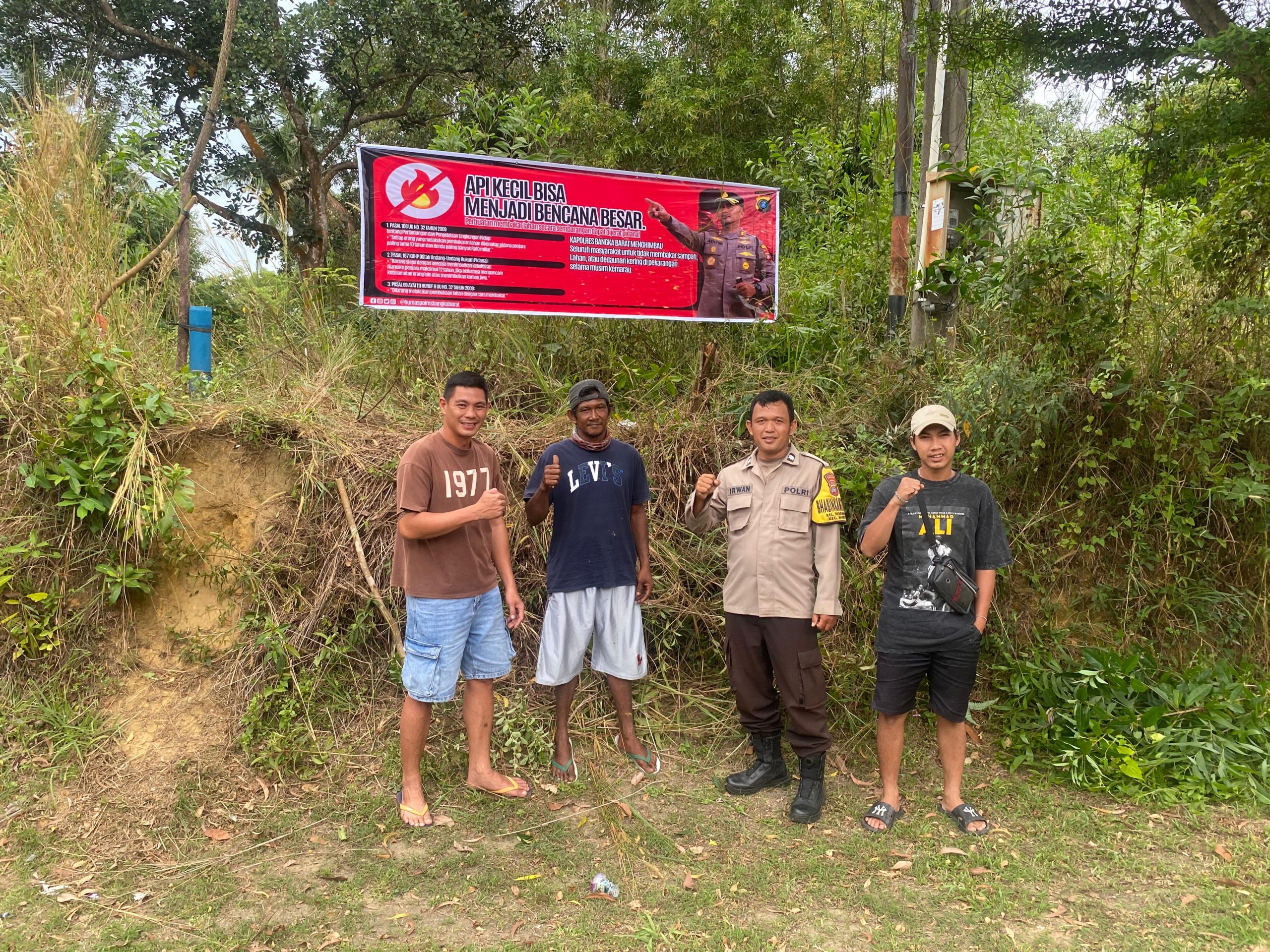 Sebagai bentuk keseriusan dan langkah nyata di lapangan, Polres Bangka Barat memasang spanduk peringatan keras di sejumlah titik strategis, termasuk di wilayah Kampung Keranggan, Kecamatan Mentok, yang selama ini dikenal sebagai salah satu wilayah rawan Karhutla, Minggu, 27 Juli 2025.