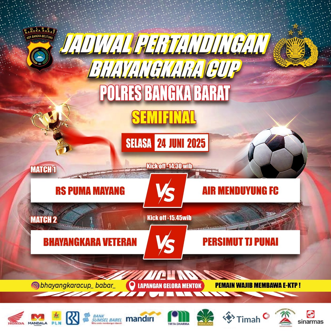 BANGKA BARAT – Turnamen sepakbola antar desa Bhayangkara Cup Polres Bangka Barat yang digelar di lapangan Bola Gelora Mentok, kini telah masuk ke babak Semifinal.