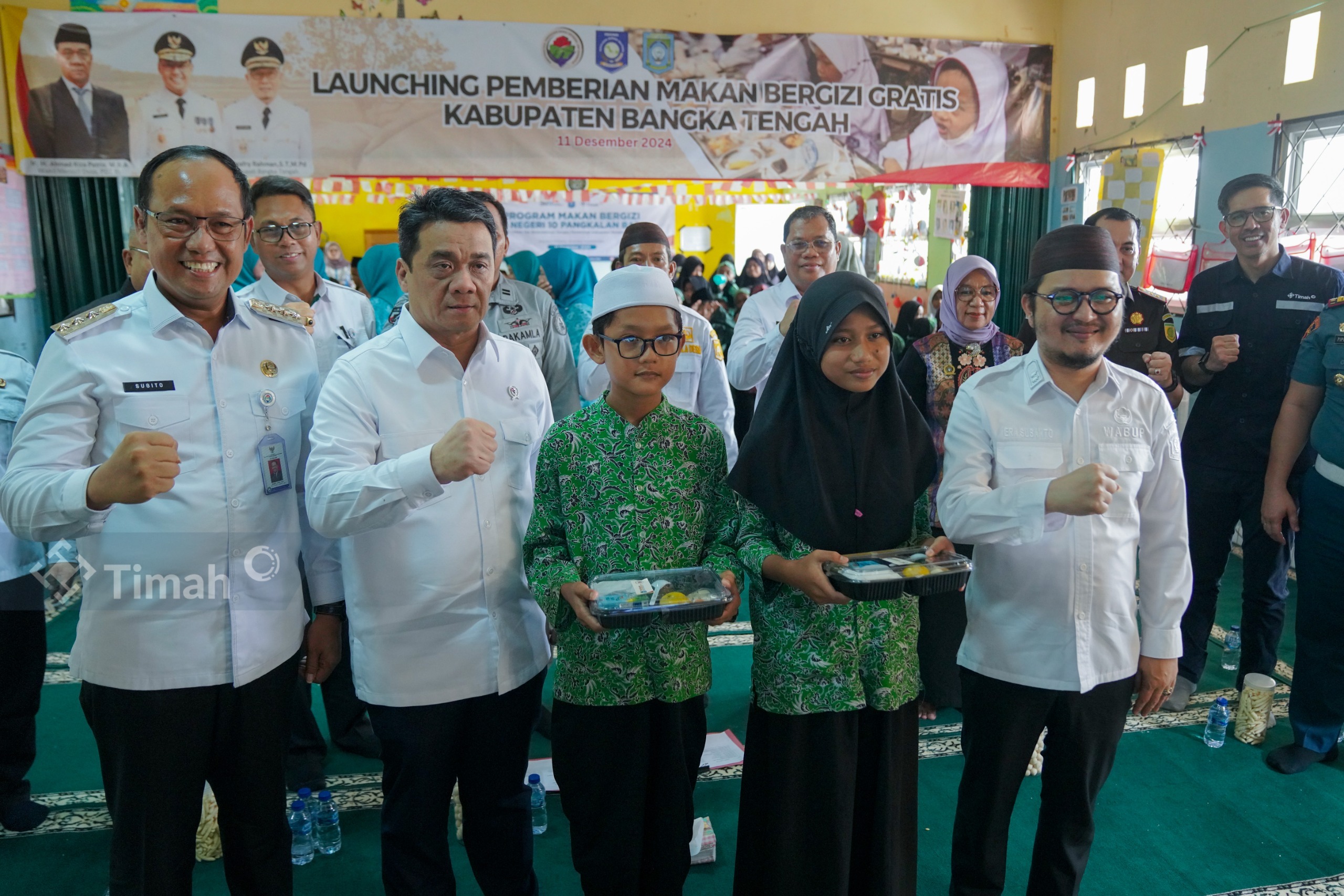 “Tidak kurang dari dua ribu lima ratus lebih siswa di Provinsi Kepulauan Bangka Belitung, khusunya di Kabupaten Bangka Tengah, melaksanakan simulasi program makan gizi gratis. Insyaa Allah nanti semua siap, pihak Desa siap membantu menyuplai kebutuhan pokoknya, kemudian nanti anak-anak juga siap menerima program ini, sehingga dapat meningkatkan kesehatan, gizi, nutrisi yang lebih baik, hingga akhirnya dapat mengurangi stunting,” ujar Ahmad Riza Patria.