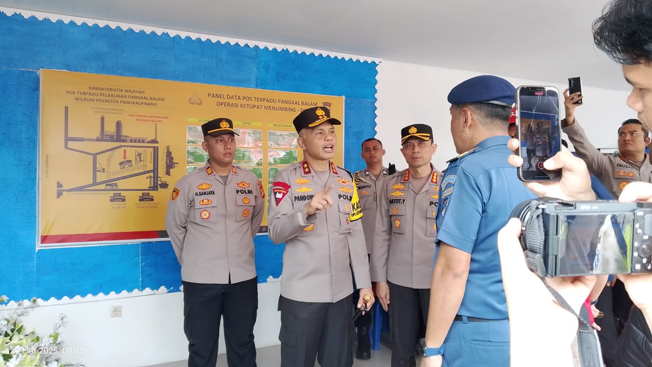 PANGKALPINANG – Kapolda Kepulauan Bangka Belitung, Irjen Pol Hendro Pandowo, melakukan pengecekan langsung ke Pos Pelayanan yang ada di Bandara dan Pelabuhan di Pangkalpinang, Sabtu (29/3/25).