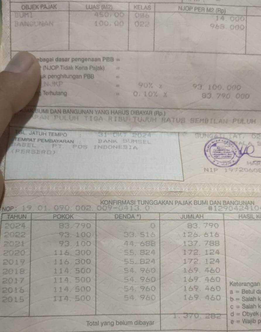 “Mertua saya juga pernah kena tahun 2015, tapi cuma sekali itu saja. Setelah itu saya bayar sendiri PBB,” kata dia