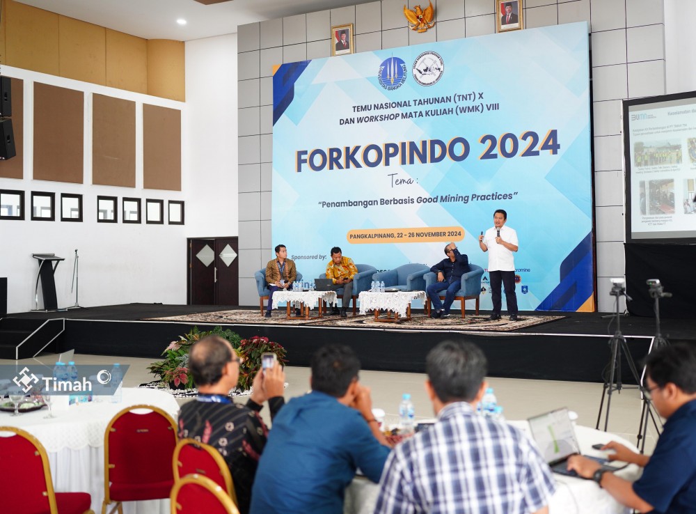 Hal ini disampaikan pada acara Temu Nasional Tahunan (TNT) X dan Workshop Mata Kuliah (WMK) VIII Forkopindo 2024 yang diselenggarakan oleh Forum Komunikasi Program Studi Teknik Pertambangan seluruh Indonesia (FORKOPINDO), di Graha Timah, Pangkalpinang (26/11/2024).