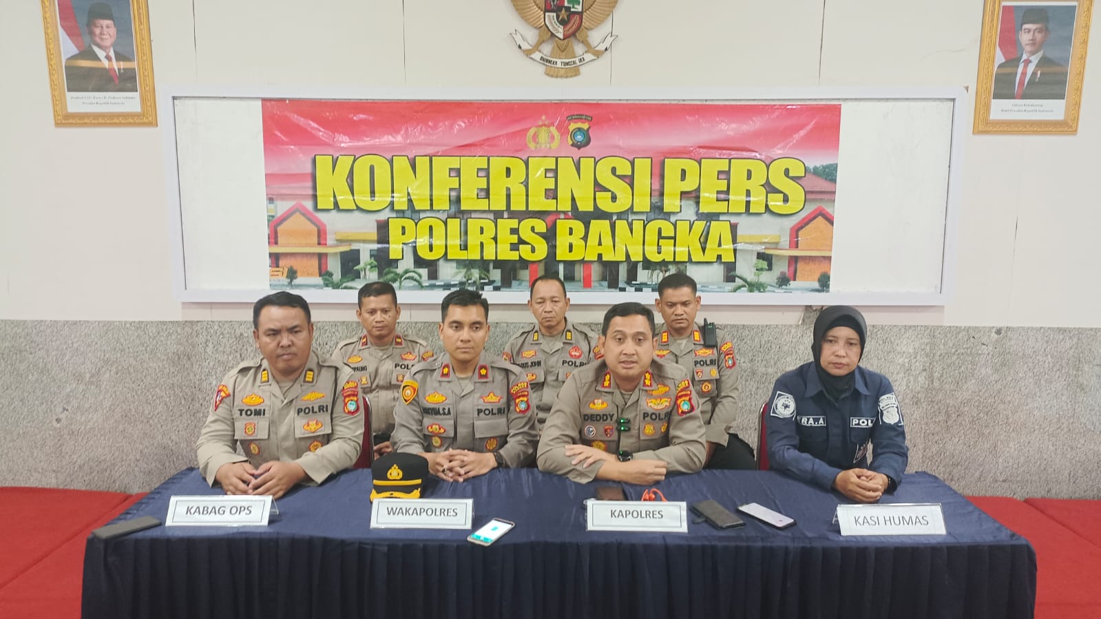 Konferensi pers itu turut dihadiri Wakapolres Bangka Kompol Yosua Atmaja, Kabag Ops AKP Astrian Tomi, Kasi Humas AKP Era Anggraini, serta Kasi Propam Iptu Teguh bersama sejumlah pejabat utama lainnya.