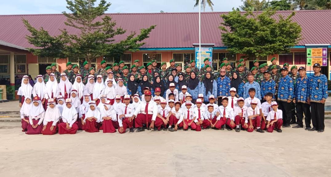 Hadir dalam kegiatan Kasdim 0432/Basel, Mayor Arm Frengki Triwibowo, para perwira dan personel Kodim 0432/Basel dan guru dan seluruh siswa-siswi SDN 8 Toboali. (Yusuf)