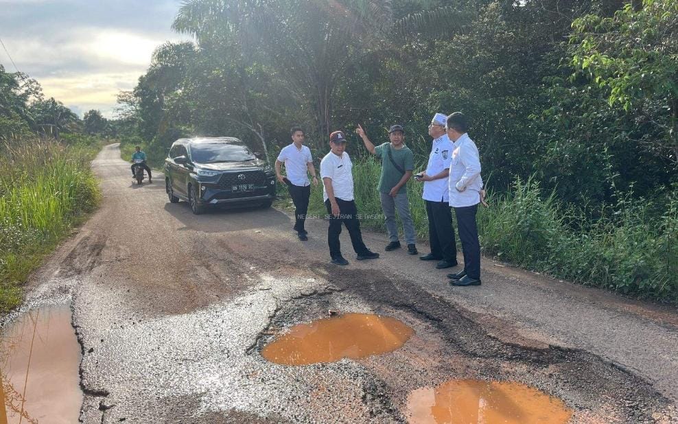 BANGKA BARAT – Wakil Bupati Bangka Barat, Yus Derahman, bersama Dinas PUPR meninjau lokasi jalan rusak di lokasi utama terselenggaranya kegiatan pesta adat tahunan yakni Pantai Pasir Kuning Desa Air Lingang Kecamatan Tempilang, Rabu (9/7/2025).